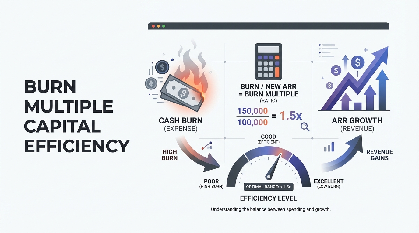 Master the burn multiple formula, understand benchmarks by stage, and learn proven strategies to improve capital efficiency in your SaaS business.