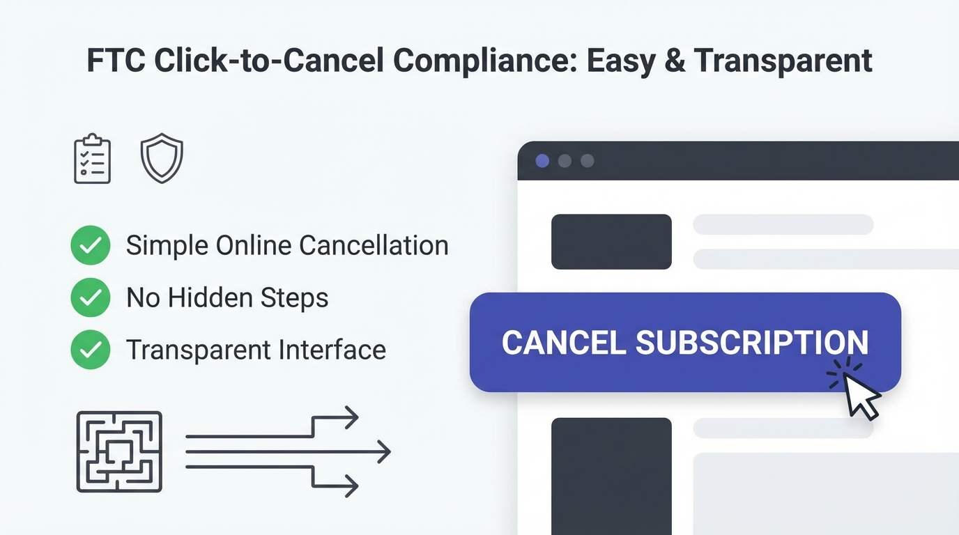 Navigate FTC click-to-cancel compliance requirements with this comprehensive guide. Learn what the rule requires, what's prohibited, and how to build a compliant cancellation flow.